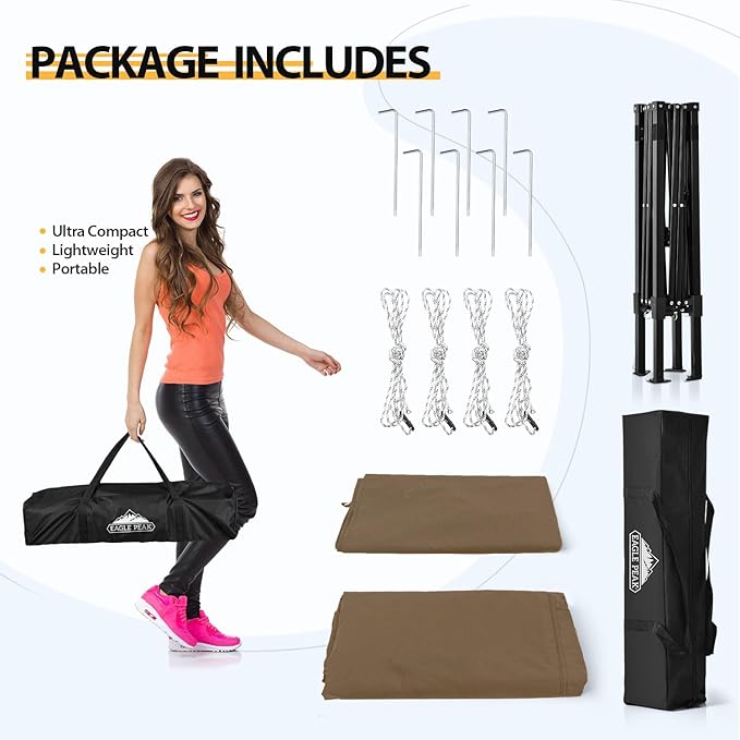 EAGLE PEAK Flex Ultra Compact 4x4 Pop-up Canopy, Sun Shelter, Changing Room, Portable Privacy Canopy Cabana for Pool, Fashion Photoshoots, or Camping, 4x4 ft, Brown