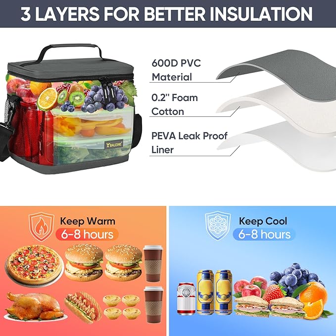 • [PREMIUM MATERIAL] Our BALEINE insulated lunch bag features advanced thermal insulation technology, providing exceptional temperature control to keep your meals hot or cold for extended periods. The high-quality 600D polyester fabric of the lunch bag is tear-resistant, ensuring longevity and durability.