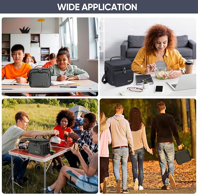 • [CONVENIENT AND PORTABLE] The adjustable and detachable shoulder strap provides comfortable carrying options. The sturdy top handle ensures easy transportation, making it ideal for commuting, picnics, camping, or any on-the-go activity. The sleek and modern design of lunch bags for women comes in a variety of trendy colors, allowing you to choose the one that matches your personal style.