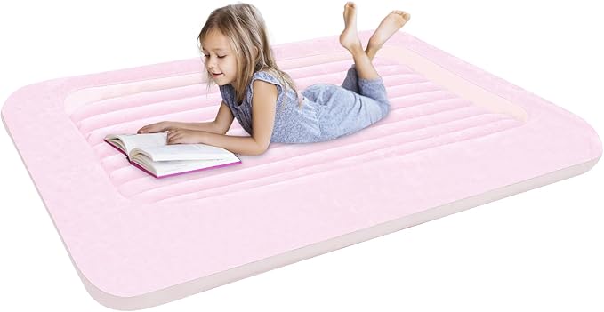 • STRONG QUALITY AND COMFORTABLE DESIGN: The thickness of our inflatable mattresses for kids are all 0.5MM, the enlarged and thickened design is more wear-resistant and durable. Low in the center and high on both sides can play a protective role. Surface with cashmere design, to give children more soft care, to achieve the role of comfort!