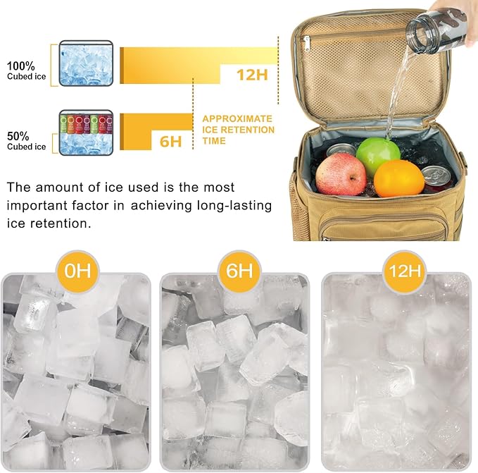 • Larger Capacity - Measuring 13.4x9.0x9.8 inch (LxWxH); 20L Lunch box for you to bring 30 cans (335ml) of your favorite drink. It easily holds all your favorite foods, snacks, drinks, and even fruits or veggies for a nourishing meal. Plus, with a large front zippered pocket and a convenient side mesh pocket, there's plenty of room for essentials like your phone, keys, napkins, water bottles, and more.