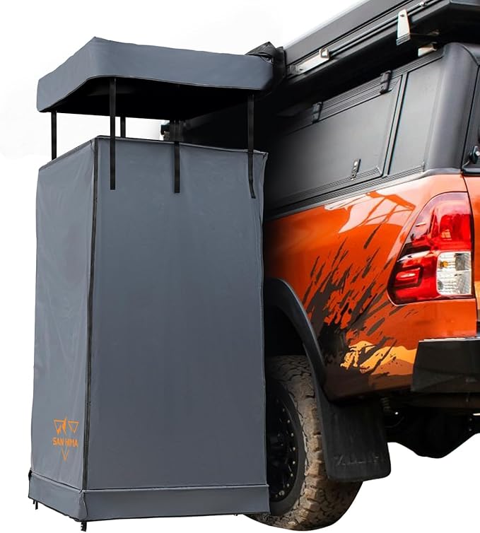 SanHima Awning Shower Tent with Roof - Car Side Shower Room w/LED Light, Camping Waterproof Portable Privacy Shelter Bathroom Overland, Gray