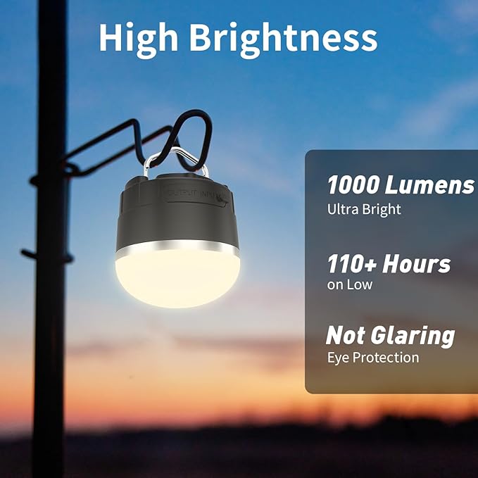 • Ultra Bright & Eye Protection: The 1000-lumen outdoor camping lamp ensures you have a crystal-clear view in any dark setting. Equipped with flicker-free, high-quality LEDs, it eliminates eye soreness even after prolonged use.