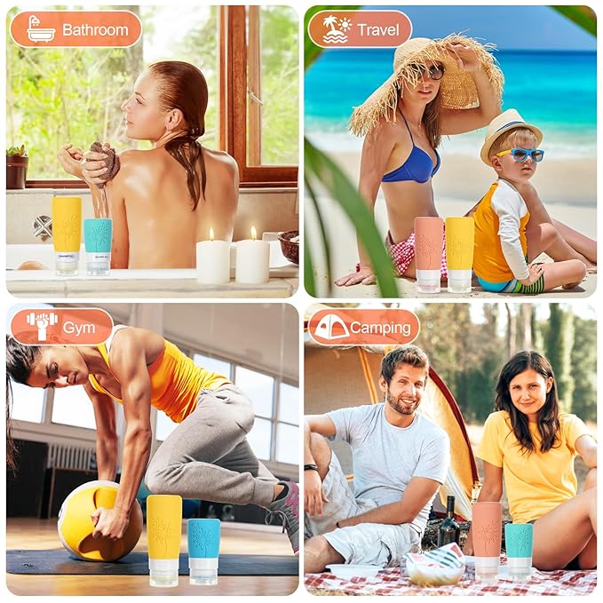 • 【BPA-free Silicone Material】 Our silicone travel bottles are made from BPA-free silicone and sturdy polypropylene, super compression resistance, lightweght and odorless, —perfect for savvy travelers who value sustainability and hassle-free TSA compliance