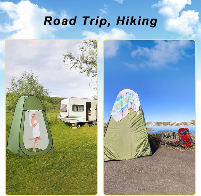 • Versatile :The camping bathroom provides a private space for outdoor showers, dressing and toilet facilities, allowing you to protect privacy in the great outdoors without worrying about prying eyes, The shower bag can be used for shower,hand washing ,dishwashing ,foodwashing, etc