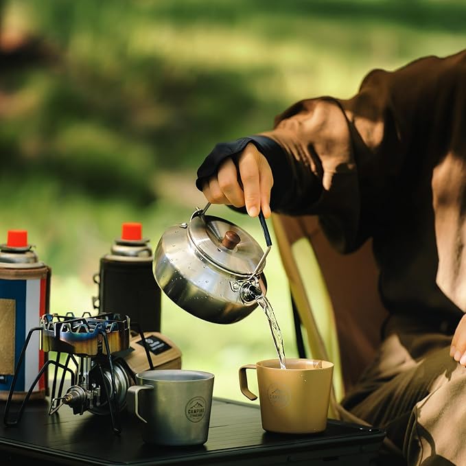 • 【Lightweight&Portable】 0.6L mini kettle, only weighs 197g, size 5.31*2.67in, suitable for outdoor SOLO camping, brewing coffee, and hiking water.