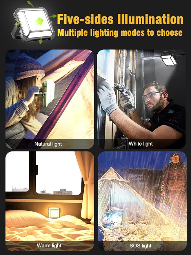 • 【High Brightness and Customizable Lighting】: Our LED camping lantern provides up to 1000 lumens of brightness, with five adjustable levels. Choose between soft, white, and warm light, perfect for both camping and as an emergency lantern during power outages. The built-in SOS mode adds an extra layer of safety for emergency situations