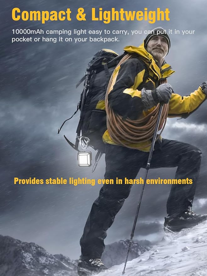 • 【Strong Magnetic Base & Versatile Mounting Options】: With a strong magnetic base, this portable outdoor camping light can attach to any metal surface, making it versatile for tent lights for camping, vehicle repairs, or emergency setups
