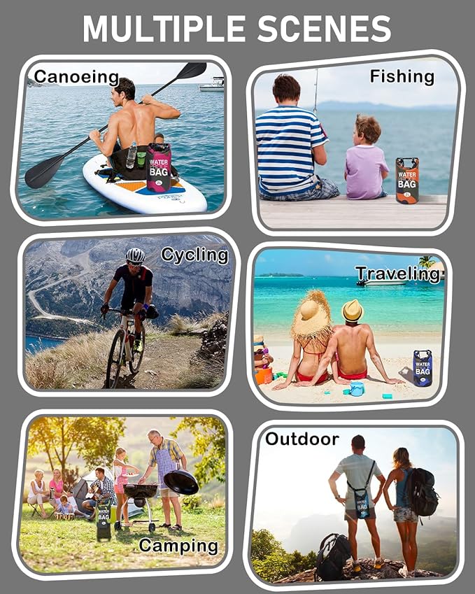 • Great Matching for Versatile Use: The 2L roll top backpack sack is very useful for water activities, including swimming, kayaking, beach trips, rafting, boating, hiking, camping, and fishing. Perfect for both wet and dry storage needs.