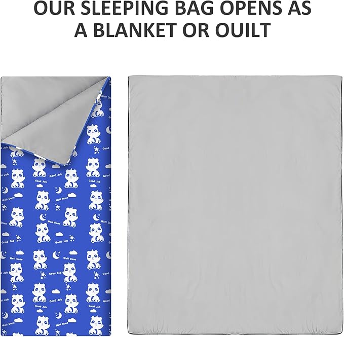 • DESIGN For Kids- There is a zipper at the bottom to open the sleeping bag and use it as a blanket. The stitching of the sleeping bag is firm, and the metal zipper opens and closes smoothly, ensuring safe and long-lasting use.
