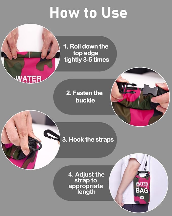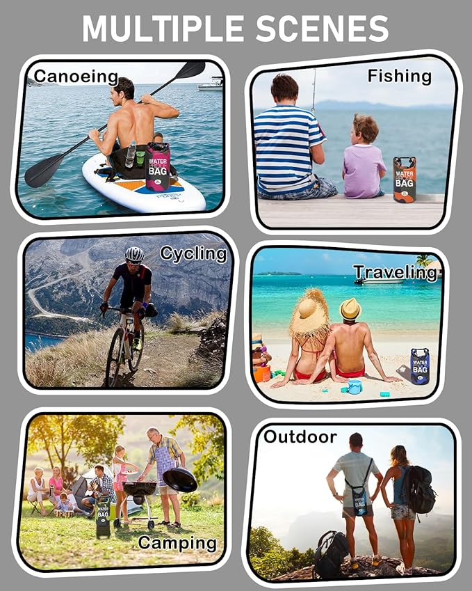 • Great Matching for Versatile Use: The 2L roll top backpack sack is very useful for water activities, including swimming, kayaking, beach trips, rafting, boating, hiking, camping, and fishing. Perfect for both wet and dry storage needs.