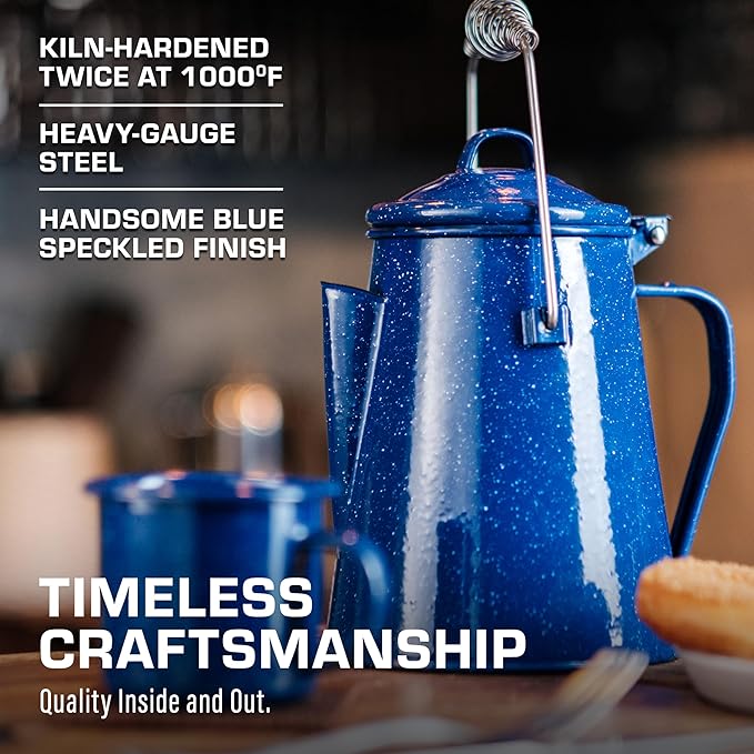 • TIMELESS CRAFTSMANSHIP—Built for the Wild, Crafted for a Lifetime – The COLETTI camping coffee pot is built to outlast the journey. Forged from reinforced steel and coated with imported German enamel, this camp kettle embodies classic outdoor cookware. Whether brewing cowboy coffee over open flames or boiling water on a stovetop, it delivers hot, pure, and steady coffee—because every great adventure starts with great coffee.