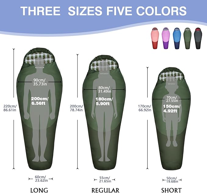 • Three sizes: Available in three sizes for adults, teenagers and children, suitable for users of different ages, convenient one-stop shopping. The sleeping bag comes with a compression bag for easy rolling and carrying. Whether you're camping, traveling, exploring the outdoors, or spending the night indoors, sleeping bags provide a comfortable sleeping environment.