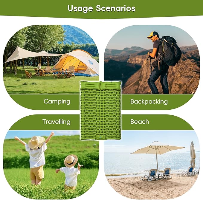 • Ideal camping essentials: The camping sleeping pad can be taken anywhere, perfect for hiking, backpacking, climbing, traveling, camping tents and other outdoor activities. Provide more spacious resting space for your family and friends, it is your ideal camping gear