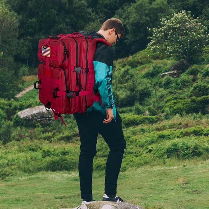• ARMY MOLLE SYSTEM - The front and both sides come with MOLLE system, Molle webbing throughout for attaching additional tactical pouches or gear as 3 day assault pack backpack combat molle backpack. The Y strap and buckle on the front is great to roll up a sweatshirt or light jacket. And the straps at the bottom can be used to hold a tent or sleeping pad.