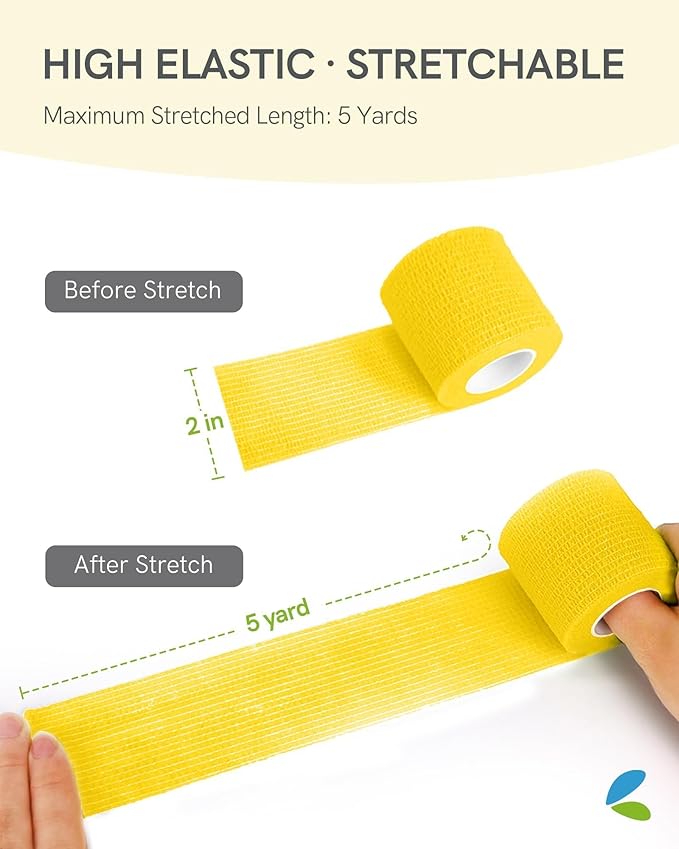 • Highly Elastic and Comfortable: Designed for flexibility, our bandages stretch up to 1.5 times their original length, providing a snug, secure fit. This elasticity allows for versatile application on different body parts, ensuring comfort and effective support.