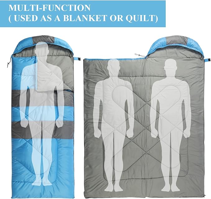 • 3 Season Sleeping Bags: Suitable for 3 season warm & cool weather - summer spring fall, Optimal comfort temperature 40℉ to 60℉(limit temperature 28℉ to 68℉). We provide three different weight of camping sleeping bag for you to choose, there’s always one for you to have a good night’s sleep.