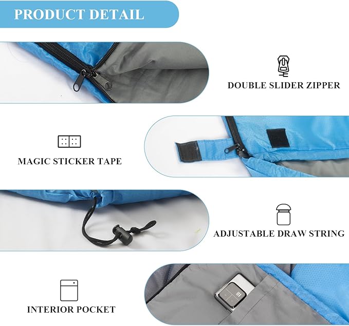 • Excellent Design: High quality double-sided zippers are snag-free. Tug the headrest drawstrings to bring the sleeping bag a little closer to your head for extra warmth in cold weather. Side zippers allow a pink and a blue one to be spliced together to become a double sleeping bag.