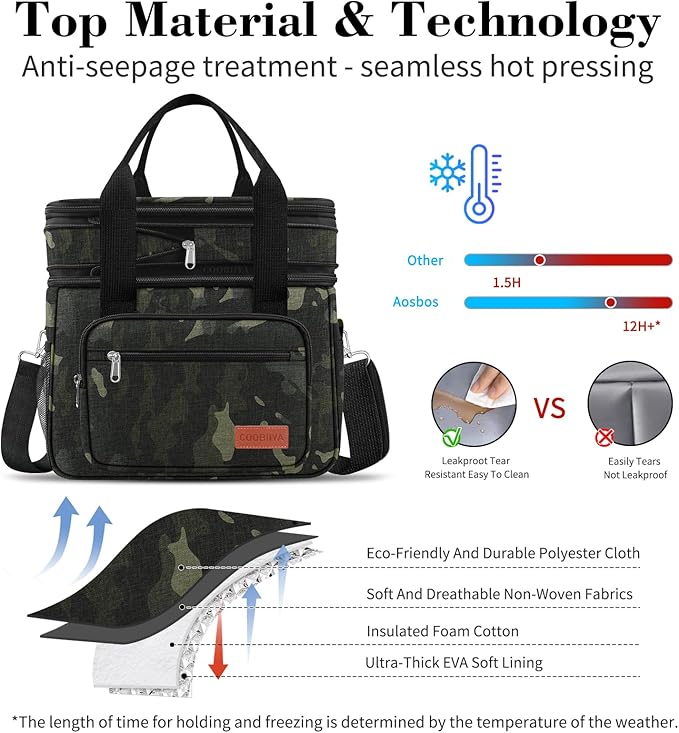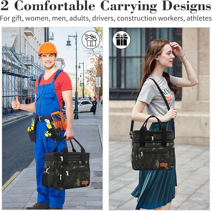 • 【2COMFORTABLE CARRYING DESIGNS】The black men's work lunch box has a reinforced top handle and a removable and adjustable shoulder strap. The reusable lunch bag can be carried by hand or over the shoulder. The tactical bag is easy to carry for work, the office, a picnic, camping, traveling, or the beach. Coobiiya lunch tote bag can be useful anywhere for women, men, adults, drivers, construction workers, athletes, and more. The perfect choice for a father, boyfriend, son or husband.