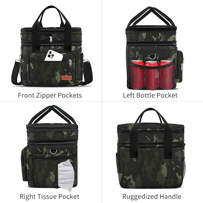 23L Extra Large Expandable Insulated Cooler Lunch Box for Men Double Deck Leakproof Heavy Duty Lunch Bag with 4 Ice Packs&2 Snack Bags for Adult/Construction/Women/Work/Picnic/Camping - Camouflage