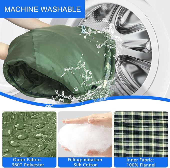 • Lightweight and portable: WKFAMOUT sleeping bag measures 78.74*32.67 inches and weighs 2.42 pounds. Ultra-lightweight backpacker sleeping bags are made of lightweight materials to ensure an extremely light overall weight. This makes it easier for backpackers to carry a lighter load when hiking, camping or climbing long distances