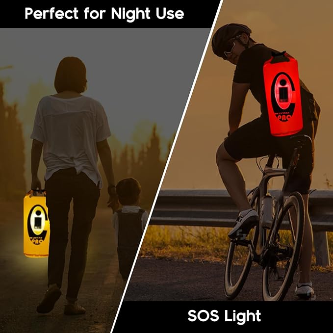 • Dry Bags Built in Multi-colored LED Light: Beside of Bluetooth speaker, the hiking dry bag has integrated multi-color LED light and will bring you wonderful lighting show when playing music, or can be used as an night light or outdoor light. We also designed SOS mode for emergency case.