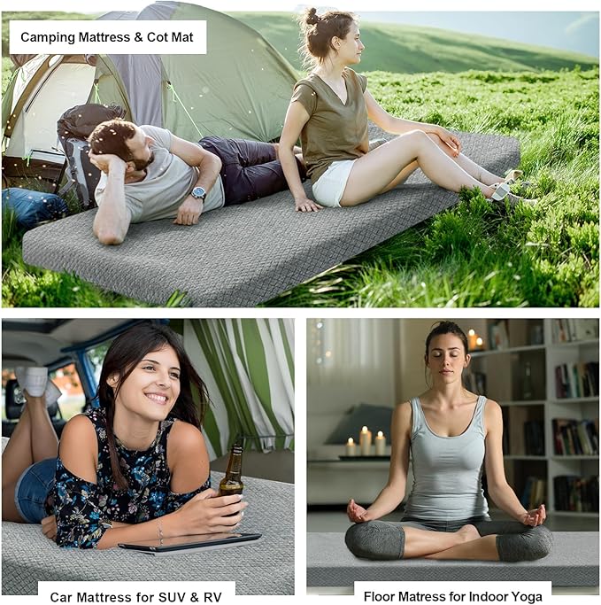 • 【VERSATILE MATTRESS】 Indoor: Guest bed, sleeping pad, floor mattress for adults and kids, sleepover, etc. Outdoor: Camping tent, car camping, truck, trailer, backpacking, etc.The perfect gift for outdoor enthusiast and campers. Come with us and explore nature together