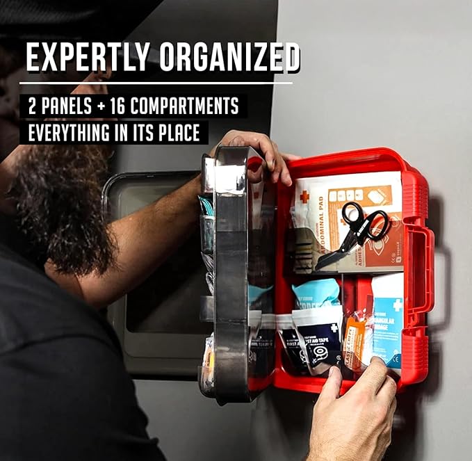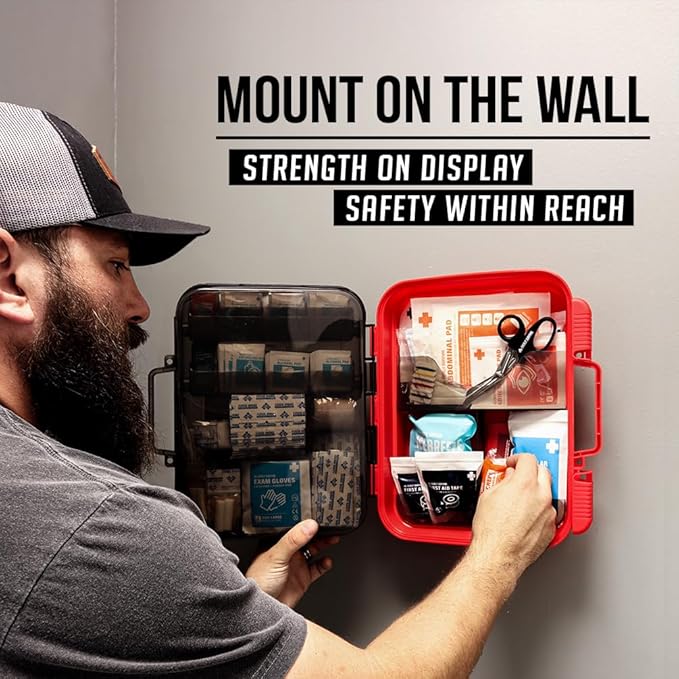 • ✅Organized, Easy-Access Compartments with Mountable Case: Features an intuitive, multi-compartment interior for quick access during emergencies. The durable hard case is mountable for easy placement in office, workstation, school classroom, restaurant kitchen, and botiquin primeros auxilios para trabajo. Case dimensions: 13" x 11.5" x 3.5", weighing 4.25 lbs.