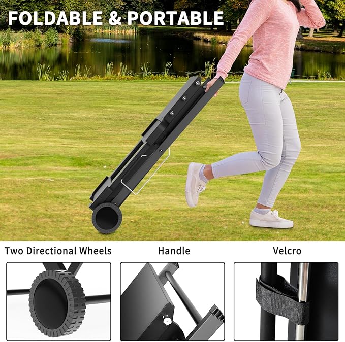 • FOLDABLE & PORTABLE GRILL TABLE: The grill carts outdoor with wheels feature a collapsible design for easy storage and mobility. The two durable wheels allow you to easily transport your grill to different outdoor locations, like backyard barbecues, camping trips, and outside picnic
