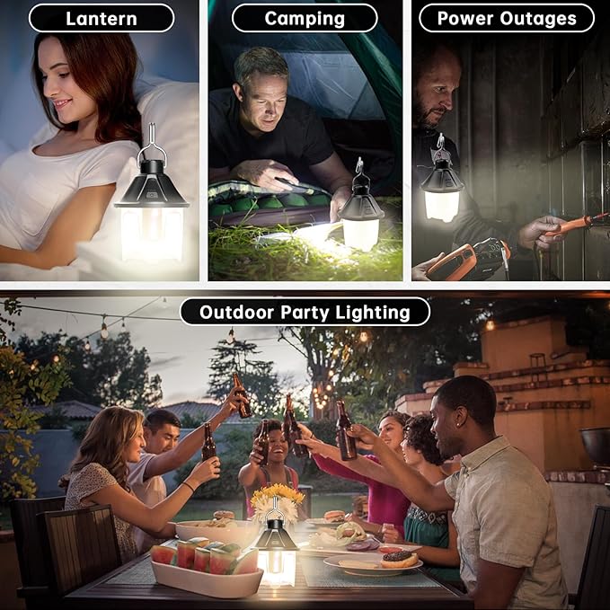 • Long Battery Life & Charge Display: As a practical rechargeable camping lantern, it equipped with a large-capacity battery for up to 6-39 hours of runtime. Type-C charging port ensures compatibility with various chargers. Four-level battery indicator for easy monitoring.