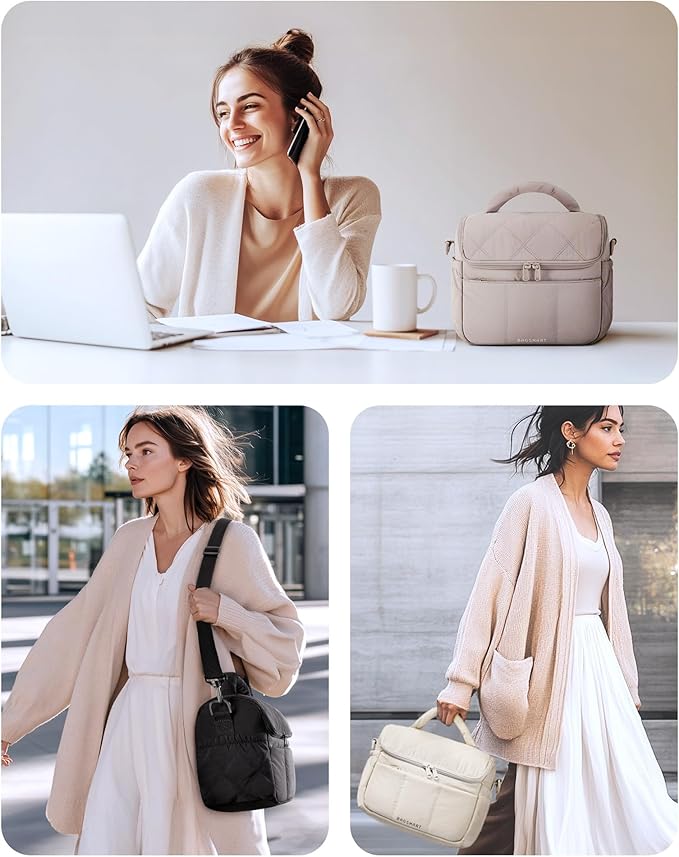 • Stylish Chic and Soft: The Bagsmart insulated lunch box for women features a lightweight puffer and chic performance twill quilted design, making it so fashionable to carry. Weight only 0.88 lbs for effortless handling for everyday use. Stand out while enjoying your meals with this aesthetically pleasing insulated lunch bag, perfect for any occasion!