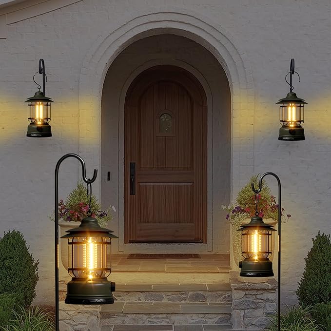 • 【Retro Style Design】The rechargeable camping lantern is compact and elegant and it adopted the latest COB bulbs, exude warm light and 360° lighting and create a cozy ambiance at night. Our battery operated lantern will bring a warm and brighter to your patio, garden, tent, outdoor and indoor