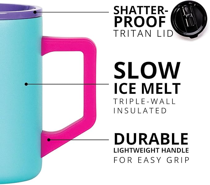 • Special Feature : Non Slip Silicone Bottom, Strong Tritan Handle, Triple-Wall Vacuum Insulated, Tritan Shatter-proof Sip Lid Non Slip Silicone Bottom, Strong Tritan Handle, Triple-Wall Vacuum Insulated, Tritan Shatter-proof Sip Lid