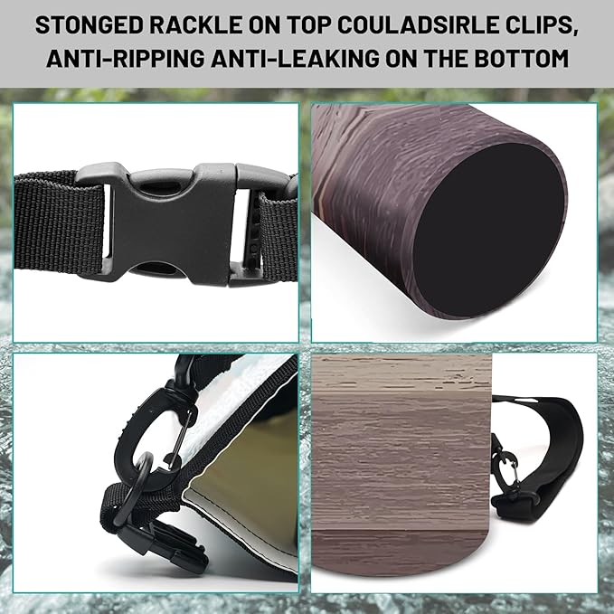 • Adjustable Carrying Options: Available in 5L and 10L with a removable shoulder strap for cross-body carry, or a 20L version featuring two adjustable straps for backpack-style comfort.Roll-top closure system provides secure watertight seal, keep your gear dry in any wet situation.Unique Retro Wooden Plank design dry bag backpack Carry it your way!