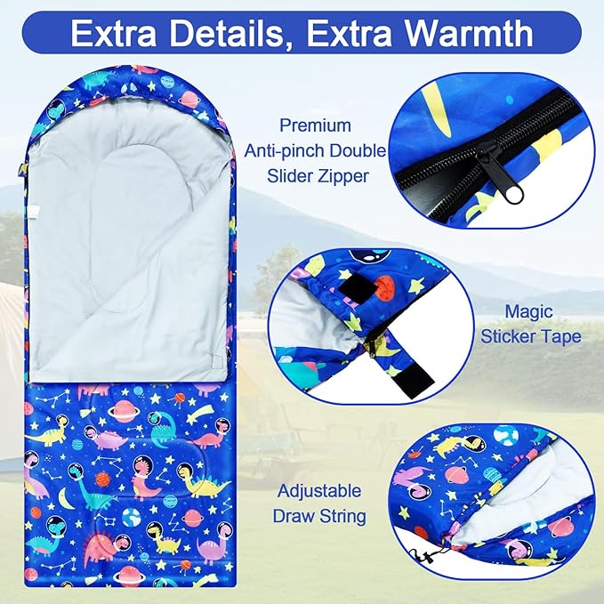 • Fits for 3 Seasons: measuring about 72.83 x 27.56 inches, space dinosaur sleeping bag is ideal for people under 180 cm in height, providing ample room for a restful sleep; Our sleeping bag is rated from 32℉ to 77℉(0℃-25℃), which is comfortable in 3 seasons
