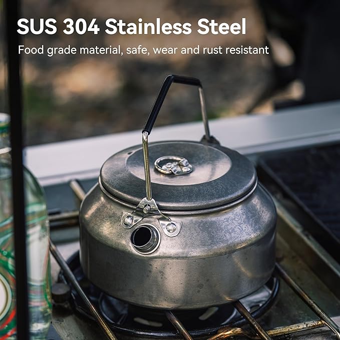 1L Camping Kettle, Portable Camp Tea Coffee Pot, Lightweight Stainless Steel Teapot, Fast Heating Boiling Water, for Outdoor Campfire Hiking Camping Picnic, Khaki