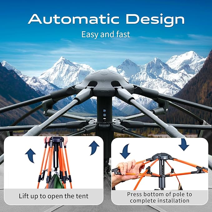 • Installation design: Simple disassembly quick installation Open the top of the tent, lift the top, open the mechanical device, and then fix the joint at the bottom in place, press down the position of the rod and spring instantaneously automatic installation