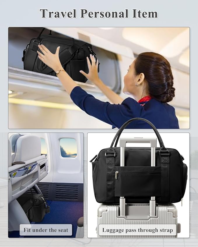 • Airplane Friendly Carry on Bags: Travel bag size: 40*20*25CM/15.7*7.9*9.84”, weight: 0.76KG/1.67lbs. This carry on bag for airplanes meets most international carry-on requirements. It fits perfectly in the overhead compartment and under the seat as a personal item during your flight. Integrated trolley sleeve slides over rolling luggage handle making airport travel a breeze. Your ideal overnight weekend boarding bag for business or personal travel.