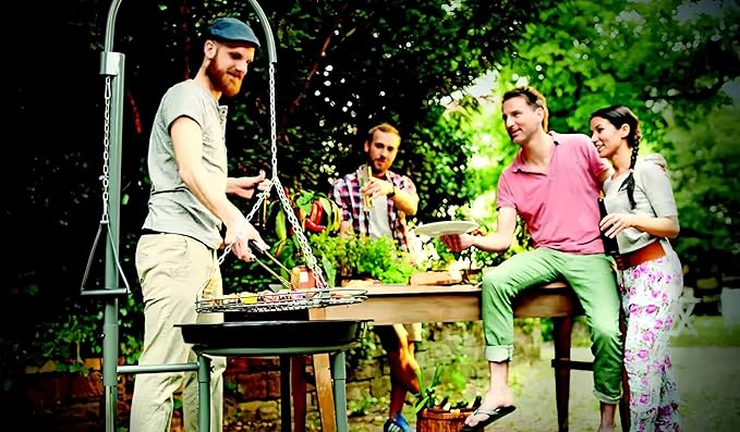 • Durable Construction: Made from sturdy stainless steel wires, the basket features a circular shape with an integrated chain for easy hanging up,and Chain latches to raise and lower grill height