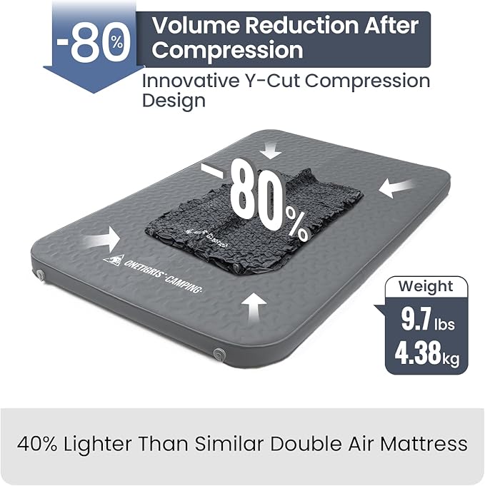 ONETIGRIS DYNISLAND 4In Double Air Mattress, Self-Inflating Sleeping Pad Foam for Camping, Backpacking, Car Trips, Travels, Air Bed with Patch-up Kit, 79”x53“
