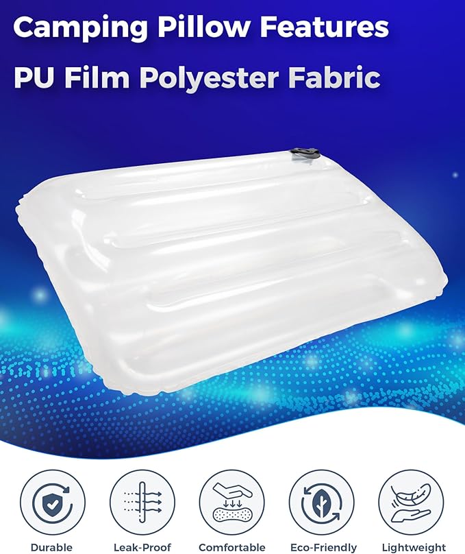 • ENVIRONMENTALLY-FRIENDLY PVC-FREE INFLATABLE PILLOW CORE: Designed with an eco-conscious mindset, our inflatable pillow features a PVC-free core. This ensures a safer, more environmentally friendly option for your outdoor adventures. The lightweight and durable construction makes it perfect for camping, hiking, or backpacking while keeping your carbon footprint minimal.
