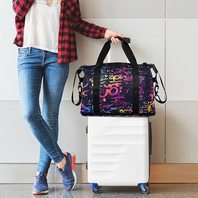 Doodle Seamless Travel Duffel Bag Waterproof Gym Sport Tote Bag Carry On Weekender Bag with Compartment