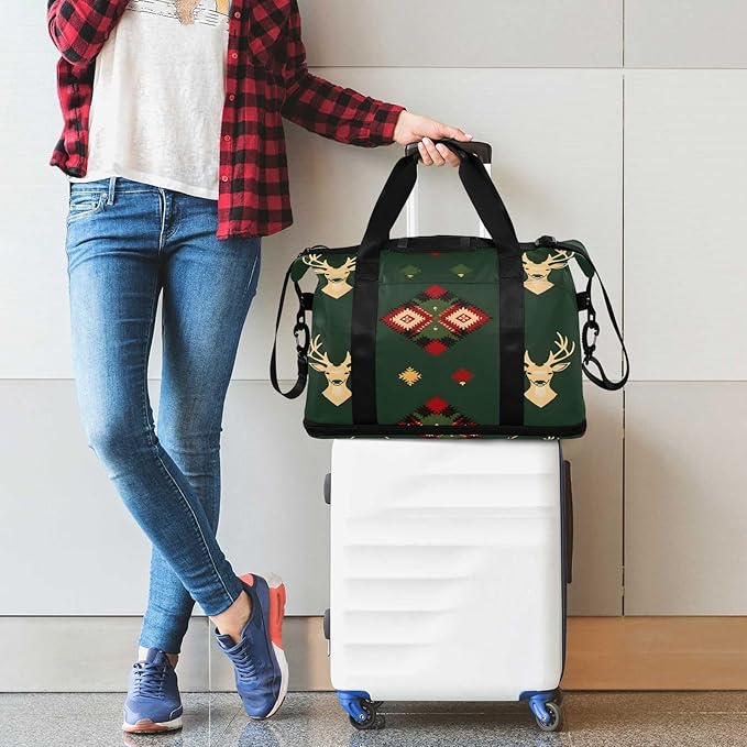Green Deers Seamless Travel Duffel Bag Waterproof Gym Sport Tote Bag Carry On Weekender Bag with Compartment