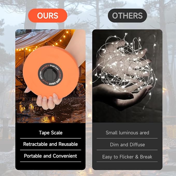 • Safety & High Quality:The camp string lights are made of soft PVC silicone, smooth and textured, sturdy and durable, can be folded, bent and wrapped.13/26 feet long string lights camping are perfect for camping party garden holiday decoration.
