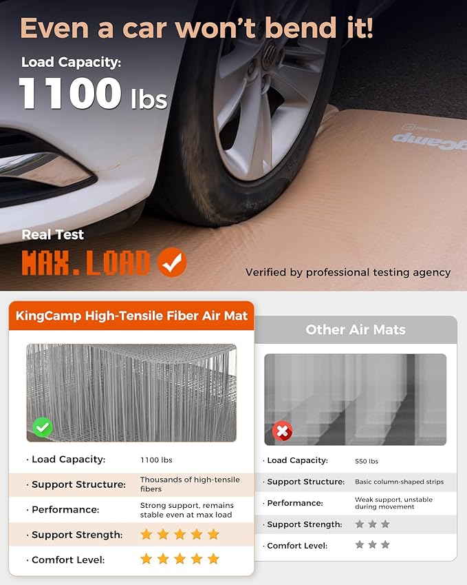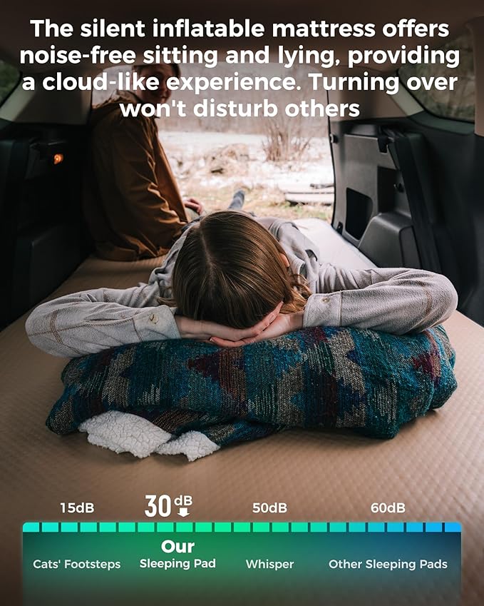 • SILENT SLEEP TECHNOLOGY FOR UNDISTURBED REST: Designed to move with you—not against you. Silent air cells and multi-point support minimize noise, so you can toss and turn without waking up your campmate. Finally, a camping mattress that feels like your bed at home.