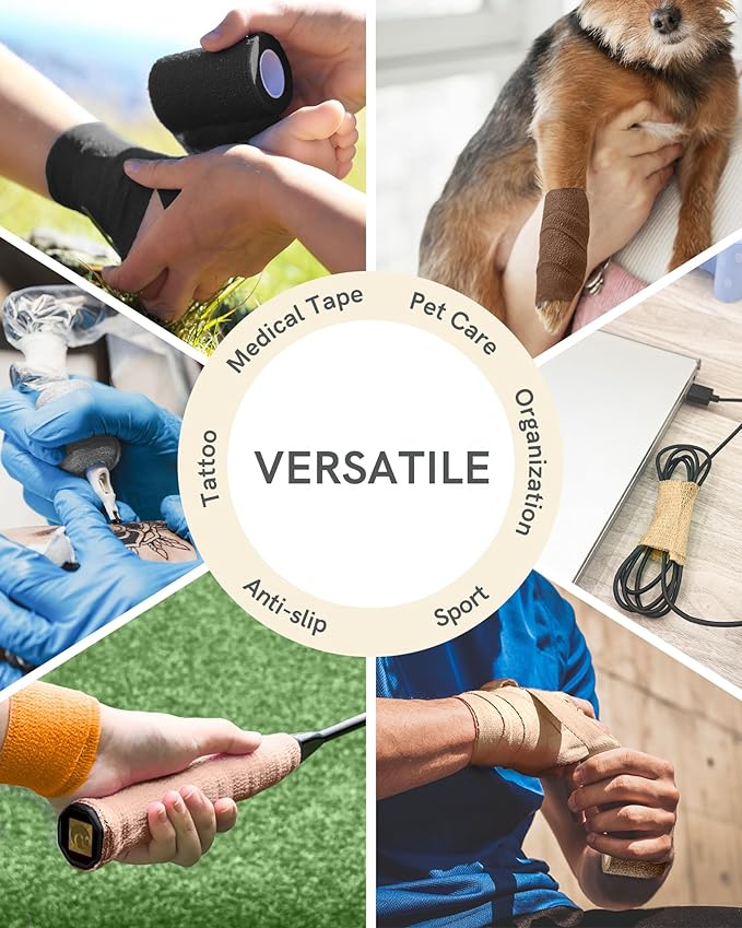 • SELF-ADHESIVE DESIGN - These elastic bandages are far better than the non-adhesive ones as they have self-adhering ability but not adhere to other surface such as hair/ clothing. It is very easy to pull off and perfect for playful children!
