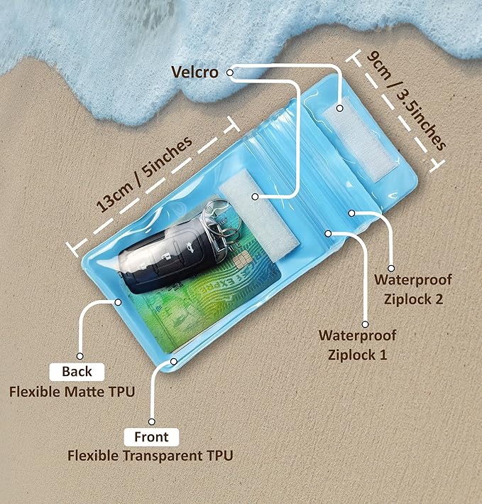 • IPX8 Certified Waterproof & Floating Design – This TPU pouch offers IPX8 waterproof protection, keeping your car key FOB, ID, credit cards, cash, and other essentials safe from water, sand, dirt, and snow, even in extreme conditions.