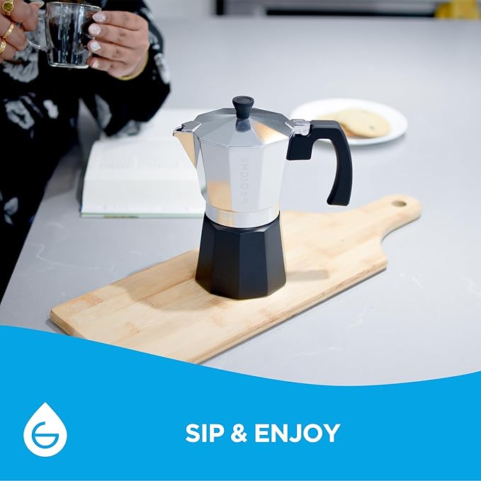 • PREMIUM QUALITY: MILANO is available in a variety of espresso cup sizes, 1 cup, 3 cup, 6 cup, 9 cup, and 12 cup - MILANO is made from food grade anodized aluminum, has a large soft touch handle with a burn guard for your finger, and the safety valve is Made in Italy, keeping you safe from high pressure buildup.