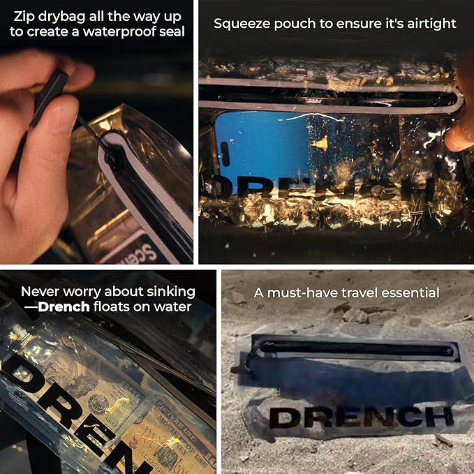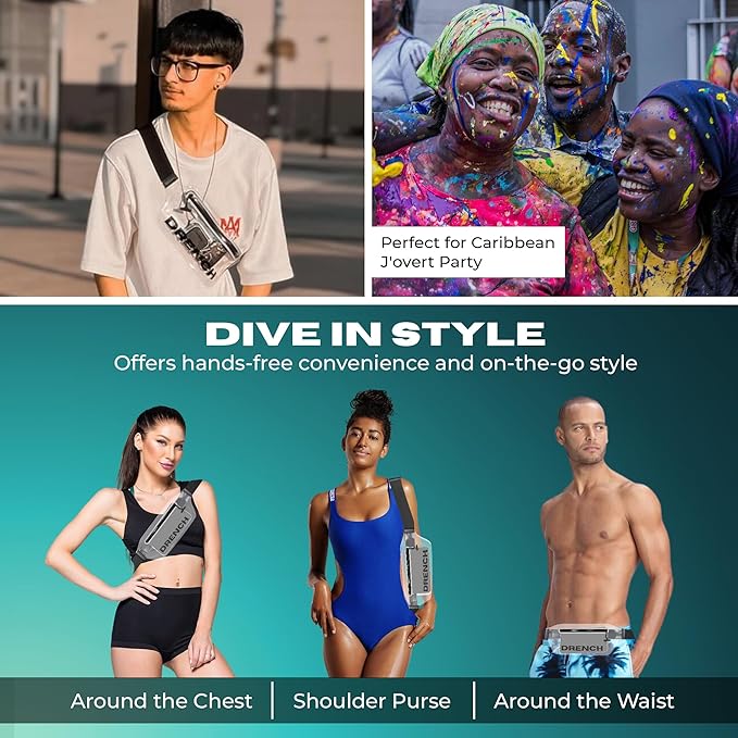 DRENCH 100% Waterproof Bag, Touchscreen Fanny pack, Transparent Cell Phone Case for Beach Essentials, IPX8 Underwater Pouches with Convertible Straps for Swimming and More, Fits iPhone Pro Max 15 SUP