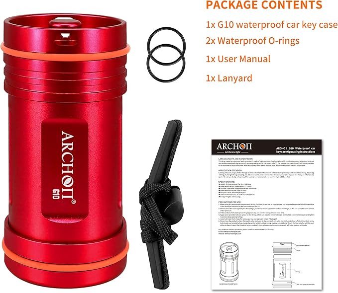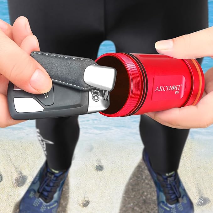 • 😜 Double-layer O-ring Design: Featuring a double-layer O-ring design, this waterproof key holder ensures effective waterproofing up to a depth of 150 meters. Tailored for professional divers, it serves as a secure storage solution for car keys and other small accessories requiring waterproof protection. The excellent waterproof performance also makes it suitable for water activities like canyoning and kayaking.